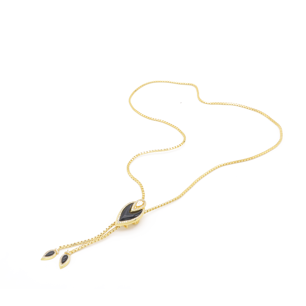 أضيفي لمسة من الفخامة الراقية إلى إطلالتك مع عقد ميسيكا الطويل الذي يجمع بين التصميم العصري والبريق الكلاسيكي. يتميز بستايل أنثوي راقٍ ينساب برقة ليمنحك حضورًا لافتًا في جميع مناسباتك.