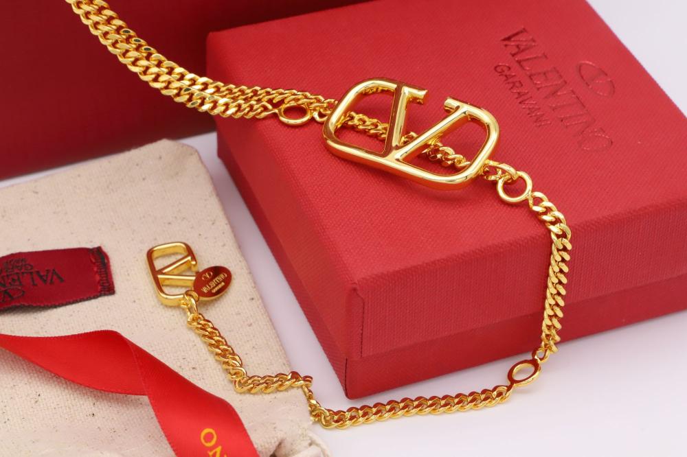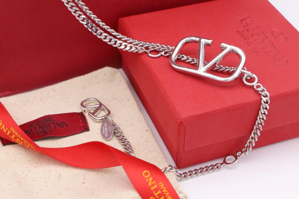 • التصميم: سلسلة طويلة متتالية بحلقات مزينة بشعار Valentino VLogo لإطلالة عصرية مميزة.