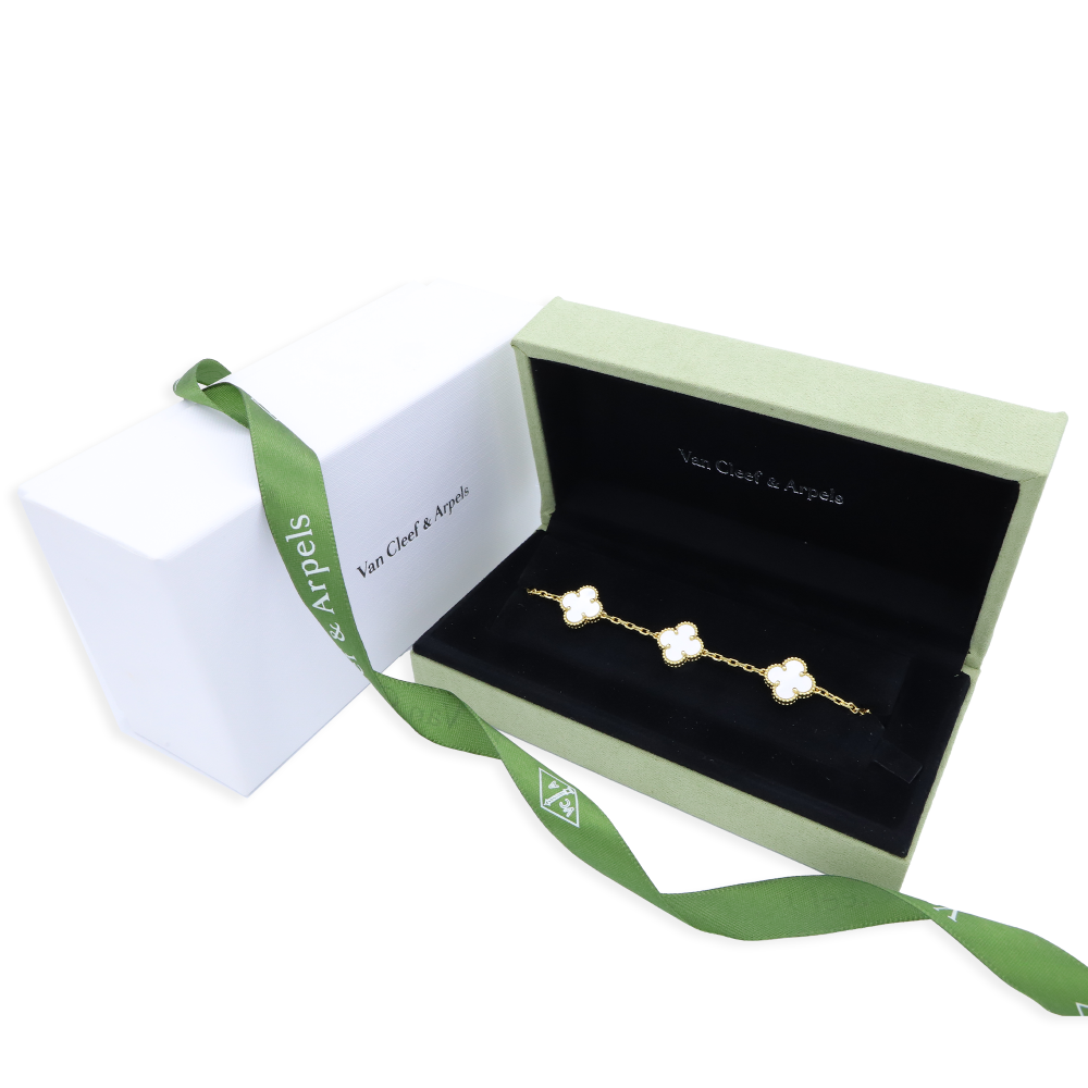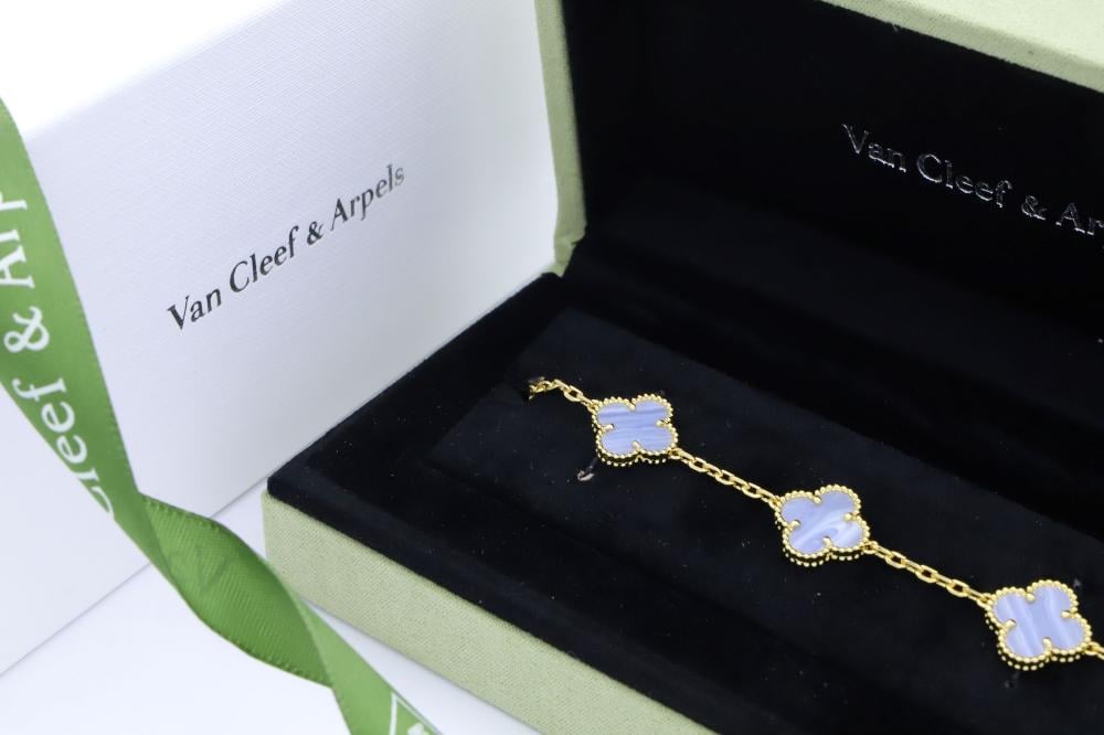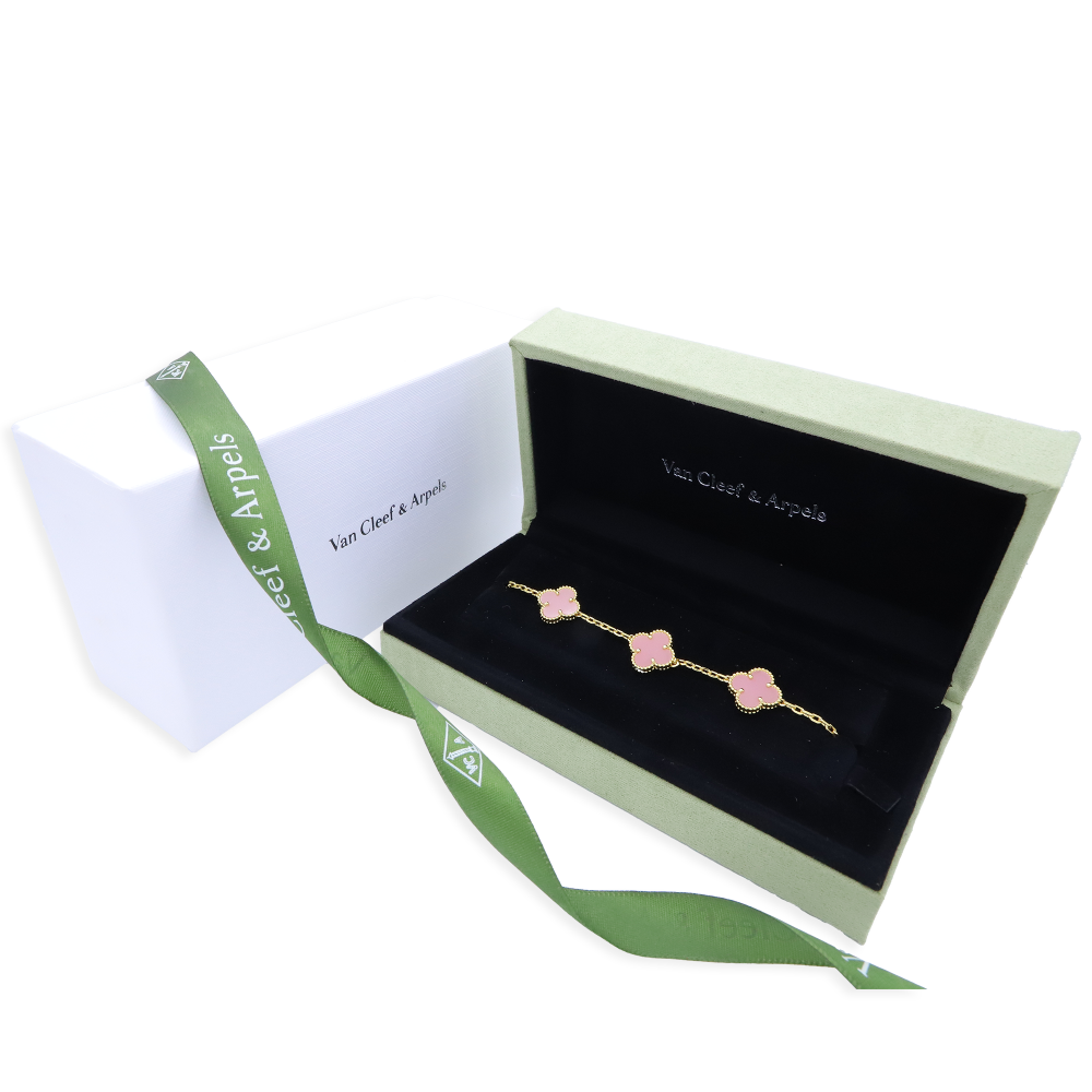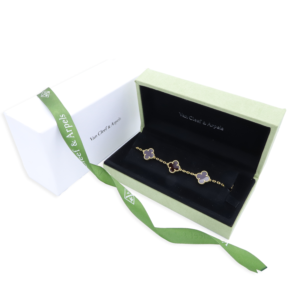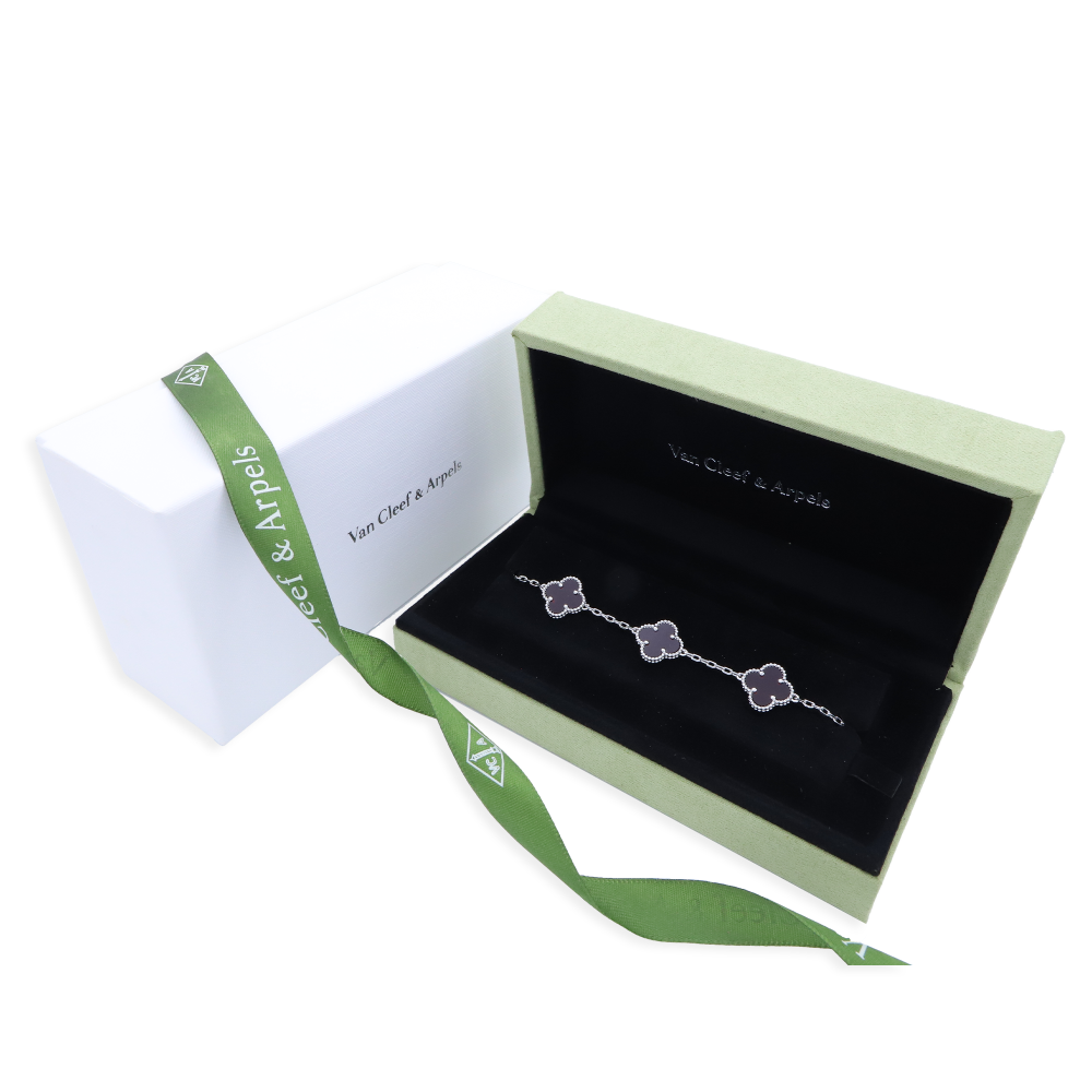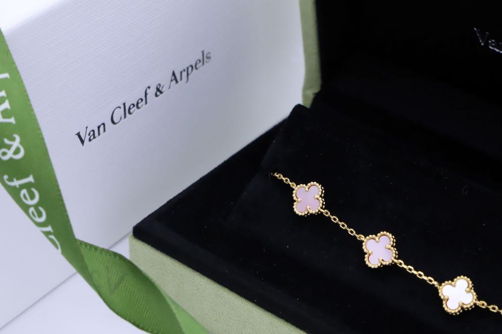 تميّزي بإطلالة راقية مع سوارة فينتاج ألامبرا فان كليف الكبيرة، بتصميمها المكوّن من خمس وردات متناسقة، متوفرة بـ ثمانية ألوان لتناسب جميع إطلالاتك اليومية والمناسبات الخاصة.